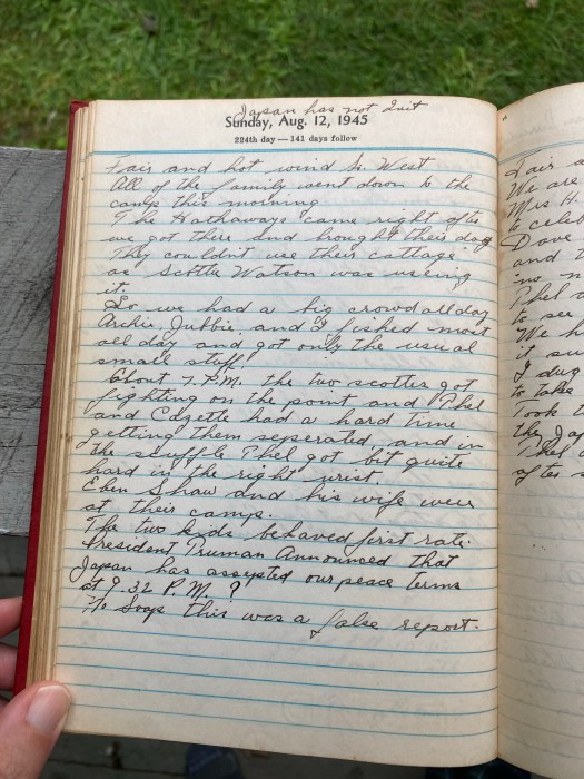 About 7 PM the two scotties got fighting on the point and Thel and Cozette had a hard time getting them separated and in the scuffle Thel got bit quite hard in the right wrist.