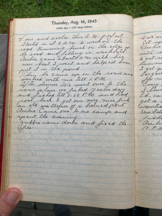 After dinner we went over to the same place we fished yesterday and fished to 7-30 PM and had poor luck. I got one very nice fish an old walloper of a horned pout.