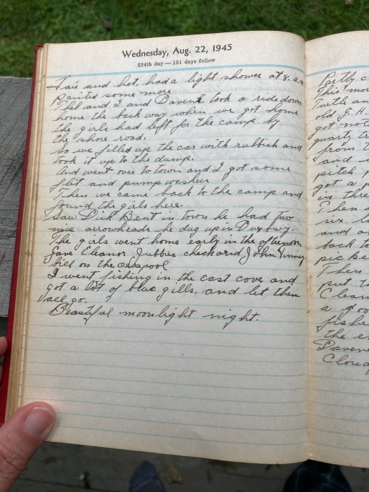 Thel and I and Davene took a ride down home the back way when we got home the girls had left for the camp by the shore road.