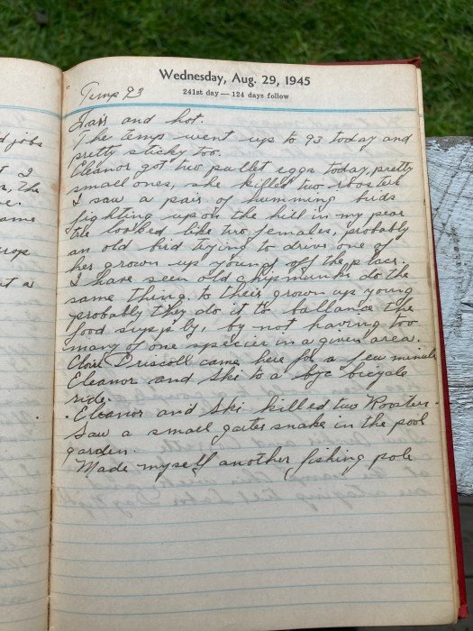 Eleanor got two pullet eggs today, pretty small ones, she killed two roosters.