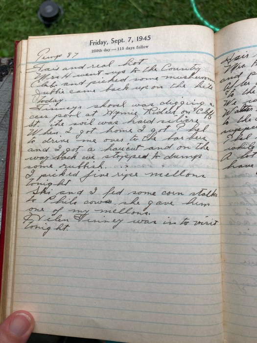 Ski and I fed some corn talks to Phils cows. She gave him one of my mellons.