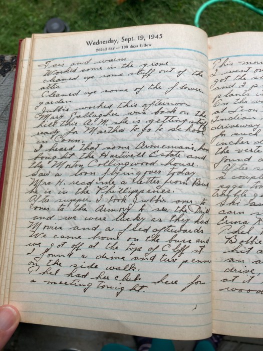 We came home on the bus and we got off at the top of Cliff St.