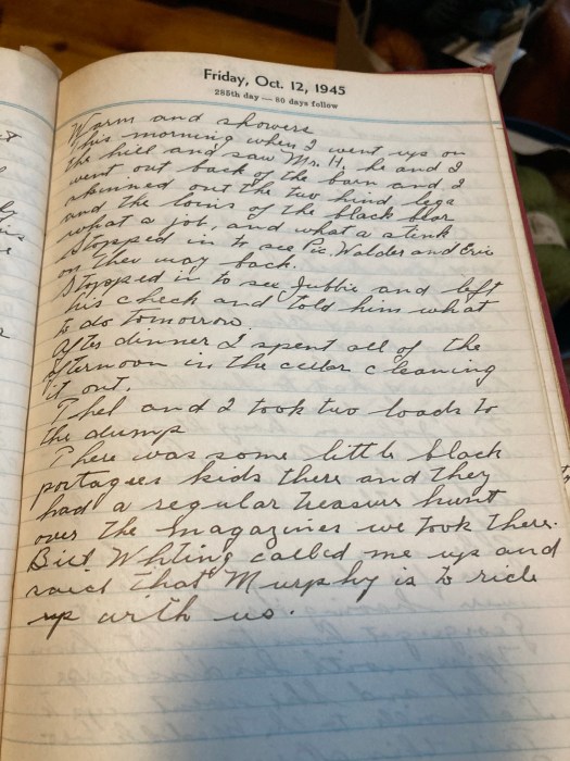 This morning when I went up on the hill and saw Mr H he and I went out back of the barn and I skimmed out the two hind legs and the loins of the black bear, what a job and what a stick,
