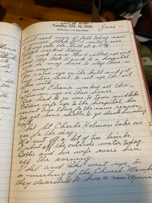 Geo has to go over to town and take Eddie’s wife up to the hospital, her second trip there for the same reason.