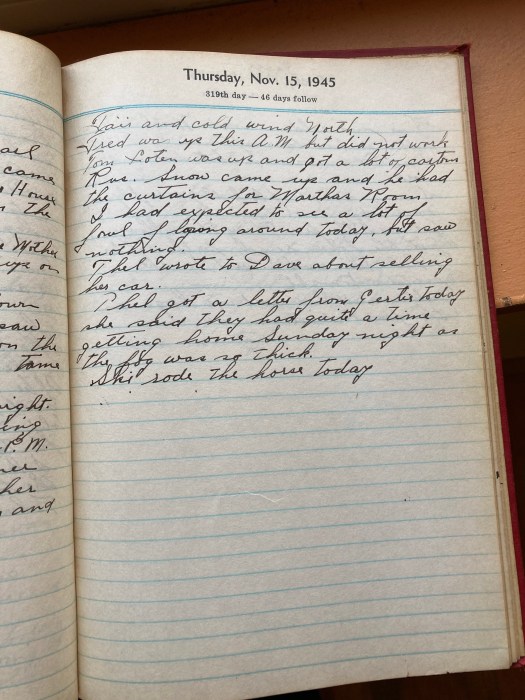 Thel got a letter from Gertie today, she said they had quite a time getting home Sunday night as the fog was so thick.