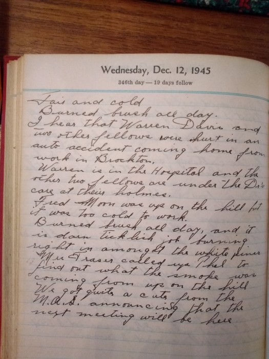 Mrs.. H. called up at 17 minutes of 5 and Thel and I went up on the hill and got 5 ducks and took them down to Geo. Crowell’s.