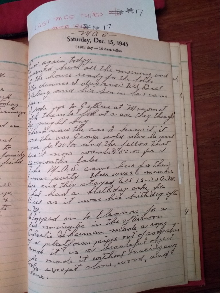 The M.A.S. came here for their Xmas party. There were 23 members here and they stayed till 12:30 AM. Thel had a birthday cake for Bill as it was his birthday after 12 AM.