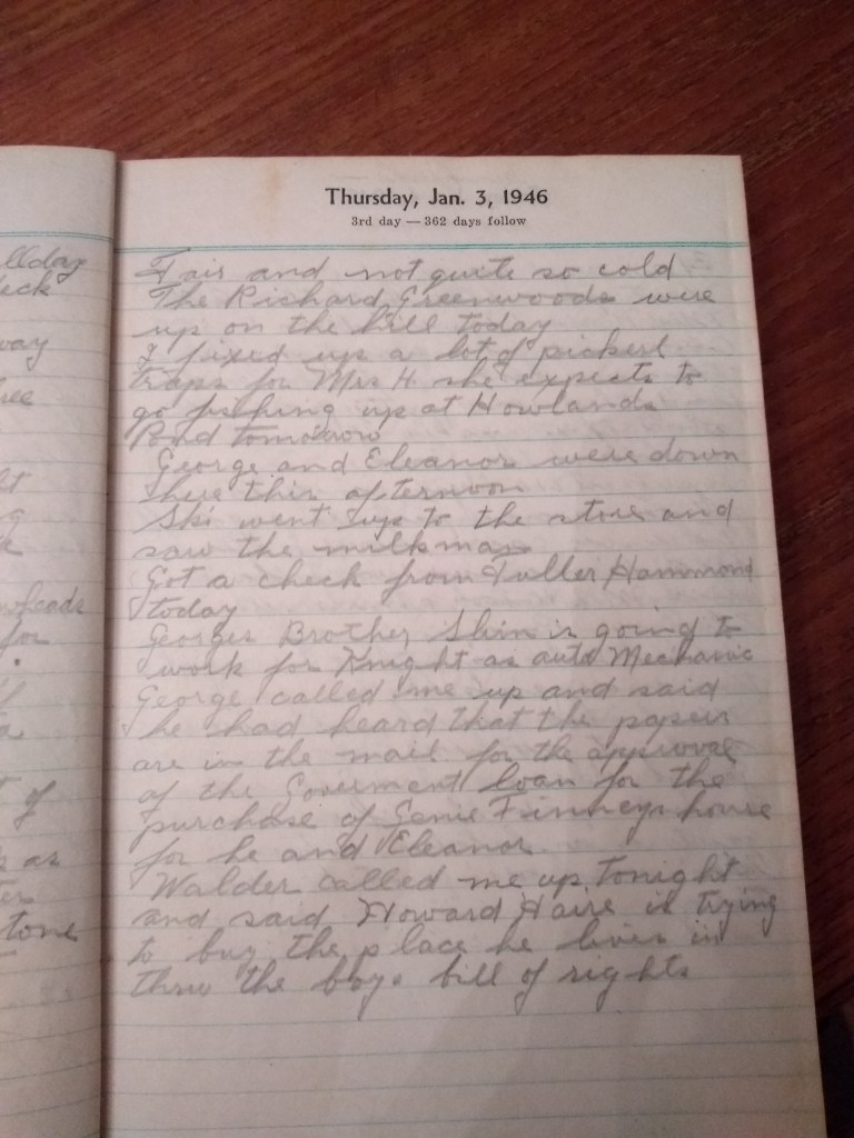 George called me up and said he had heard that the papers are in the mail for the approval of the government loan for the purchase of Genie Finney’s house for he and Eleanor.