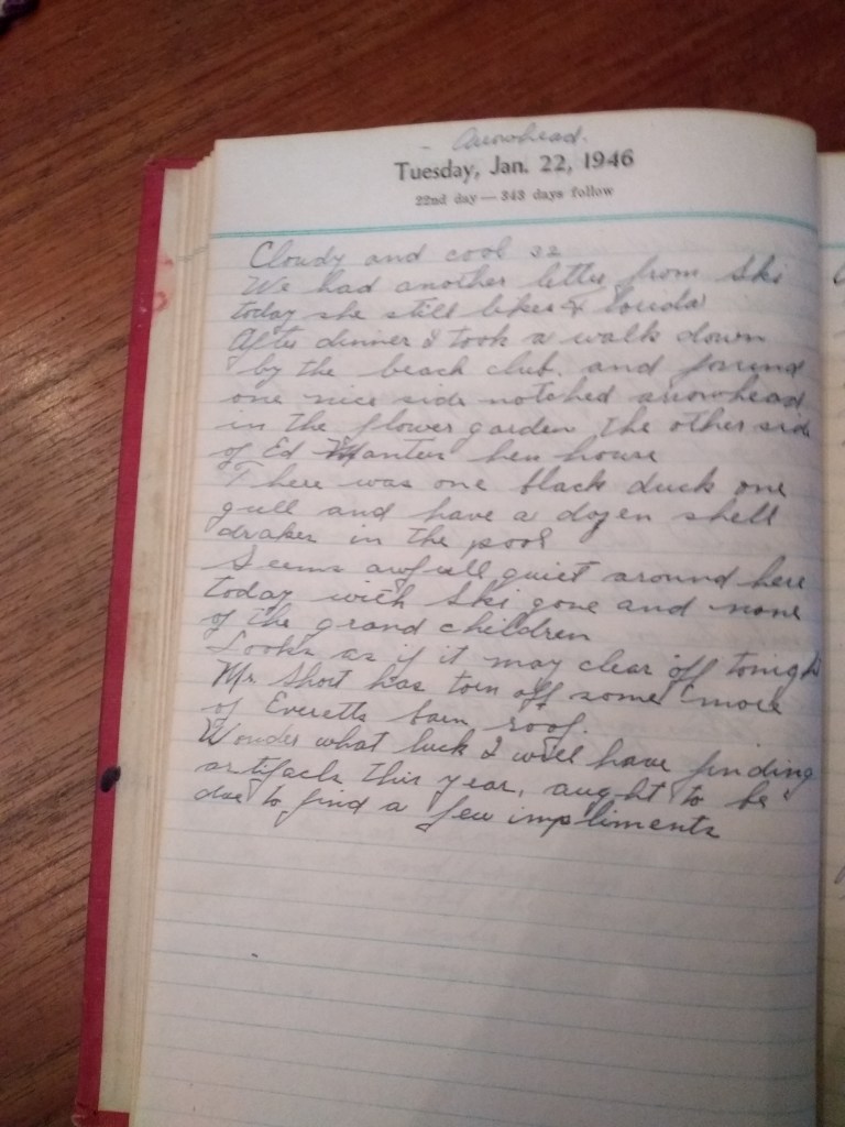 After dinner I took a walk down by the beach club and found one nice side notched arrowhead in the flower garden the other side of Ed Manters hen house.