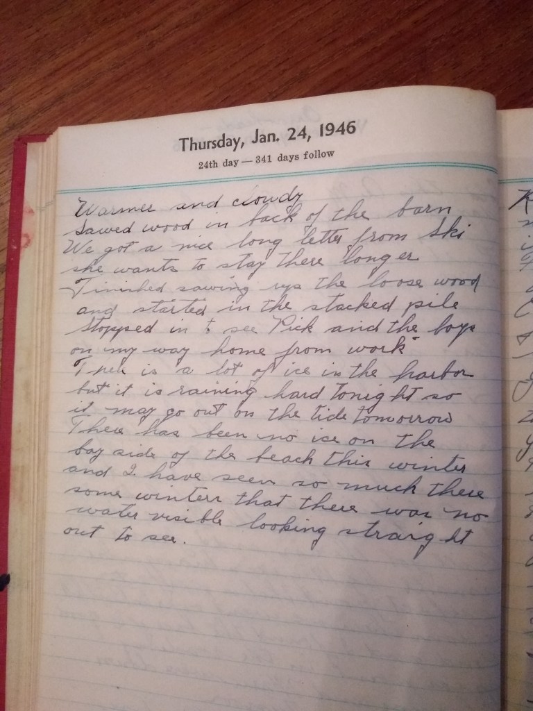 There is a lot of ice in the harbor but it is raining hard tonight so it may go out on the tide tomorrow. There has been no ice on the bay side of the beach this winter and I have seen so much there some winters that there was no water visible looking straight out to sea.