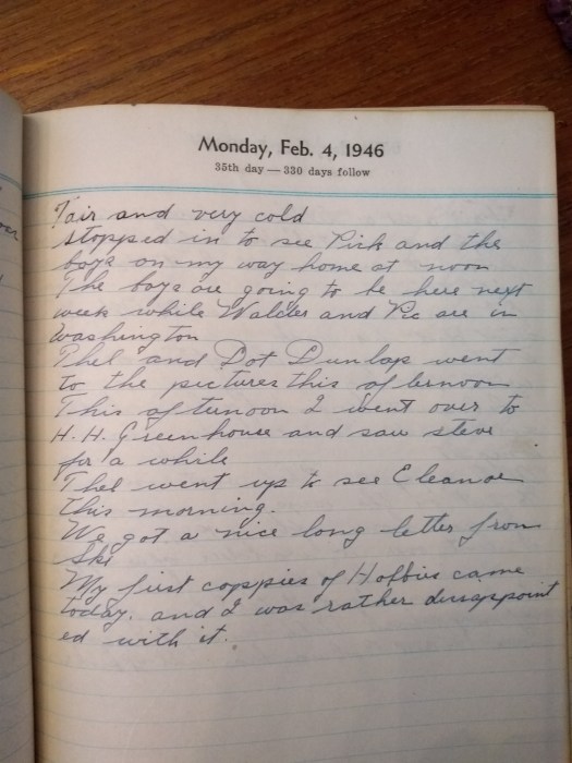 Thel and Dot Dunlap went to the pictures this afternoon. This afternoon I went over to H.H. greenhouse and saw Steve for a while.