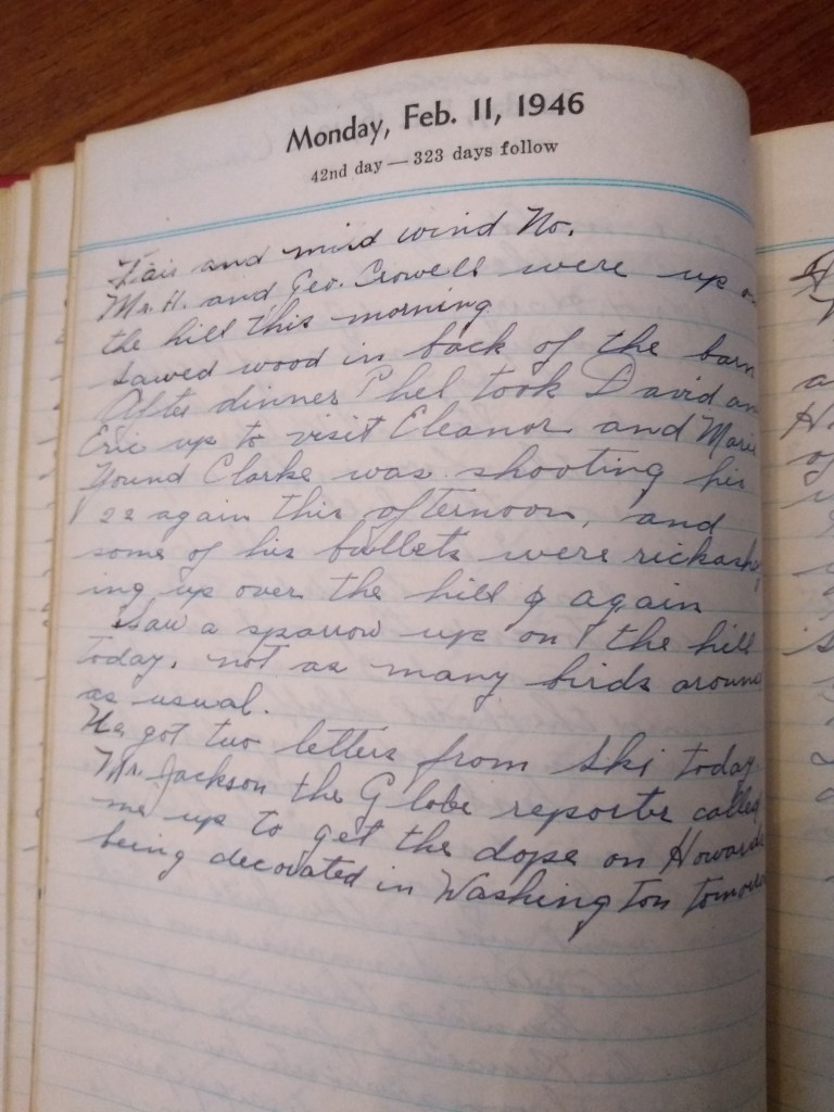 Young Clarke was shooting his 22 again this afternoon, and some of his bullets were rickashaying up over the hill again.