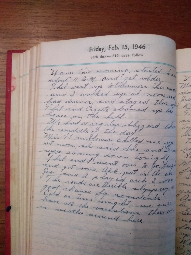Thel went up to Eleanors this morning and I walked up at noon and had dinner, and stayed there while Thel and Cozette cleaned up the house on the hill.