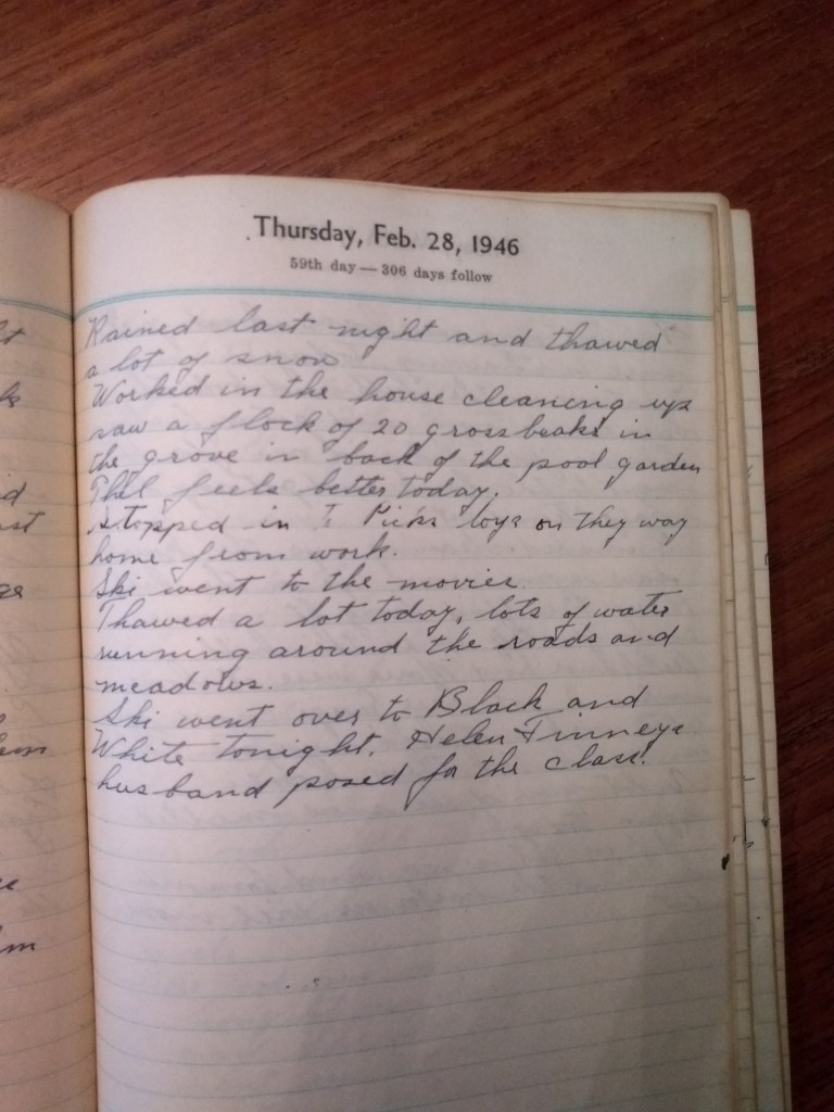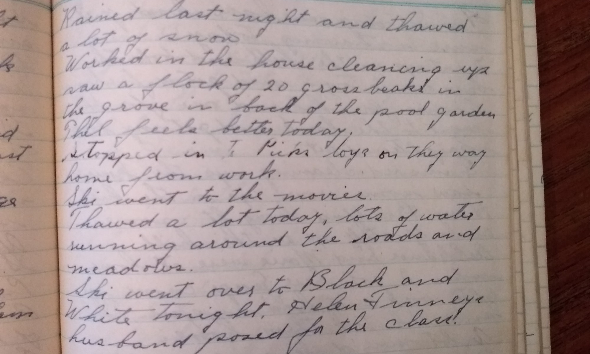 Ski went over to Black and White tonight. Helen Finney’s husband posed for the class.