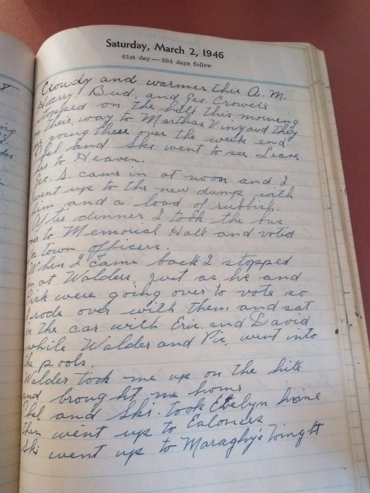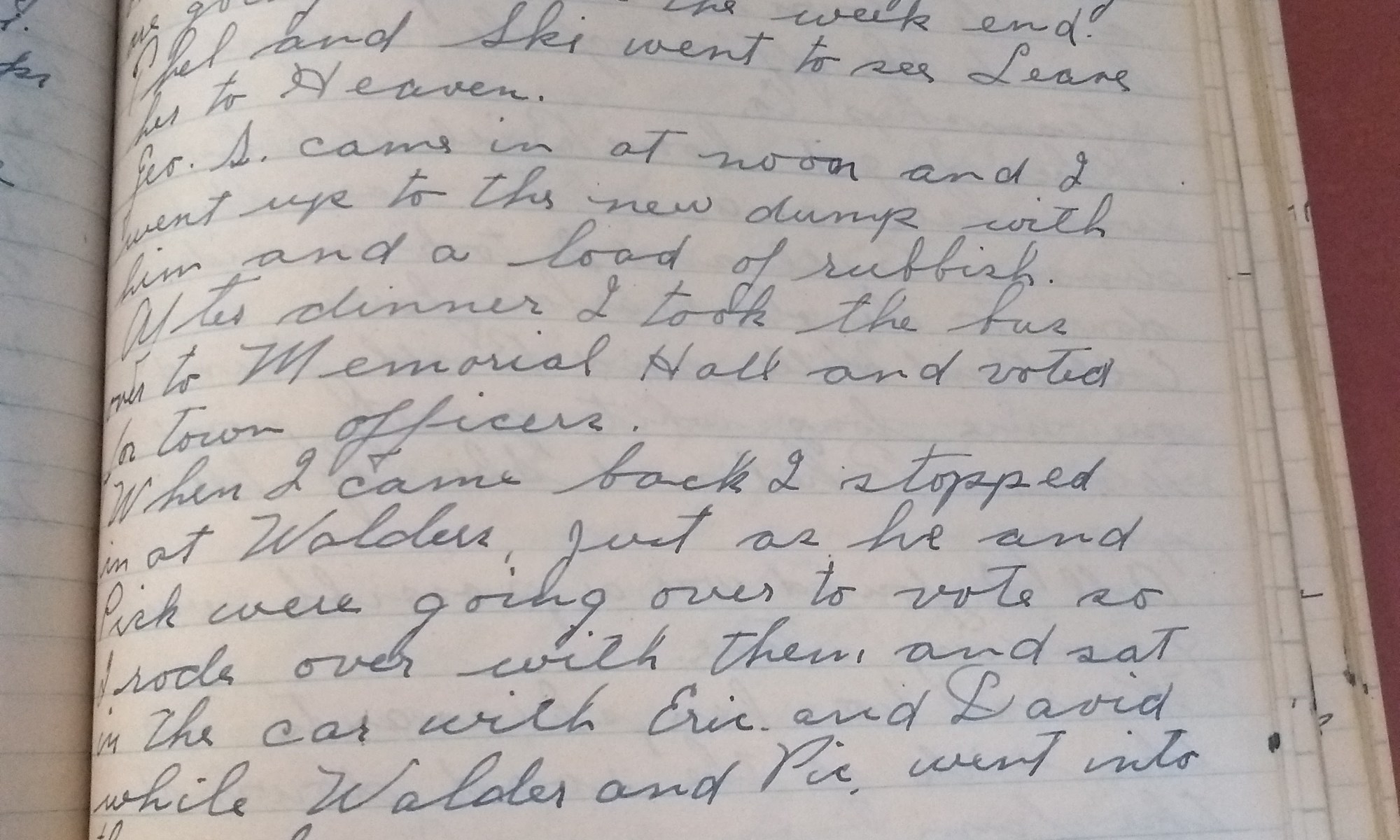 After dinner I took the bus over to Memorial Hall and voted for town officers.