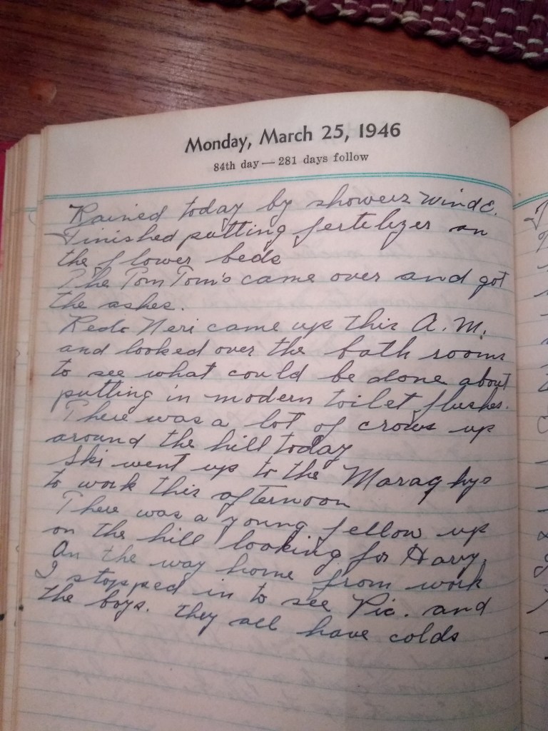 Redo Neri came up this A.M. and looked over the bathrooms to see what could be done about putting in modern toilet flushes.