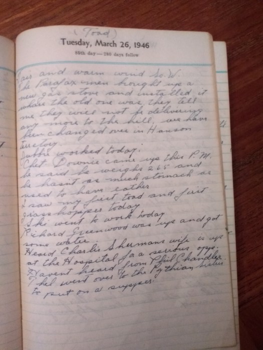 The Parafax men brought up a new gas stove and installed it where the old one was. They tell me they will not be delivering any more to the hill. We have been changed over in Hanson territory.