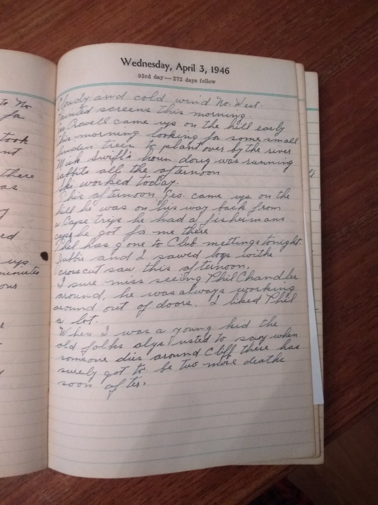 Geo. Crowell came up on the hill early this morning looking for some small linden trees to plant over by the river.