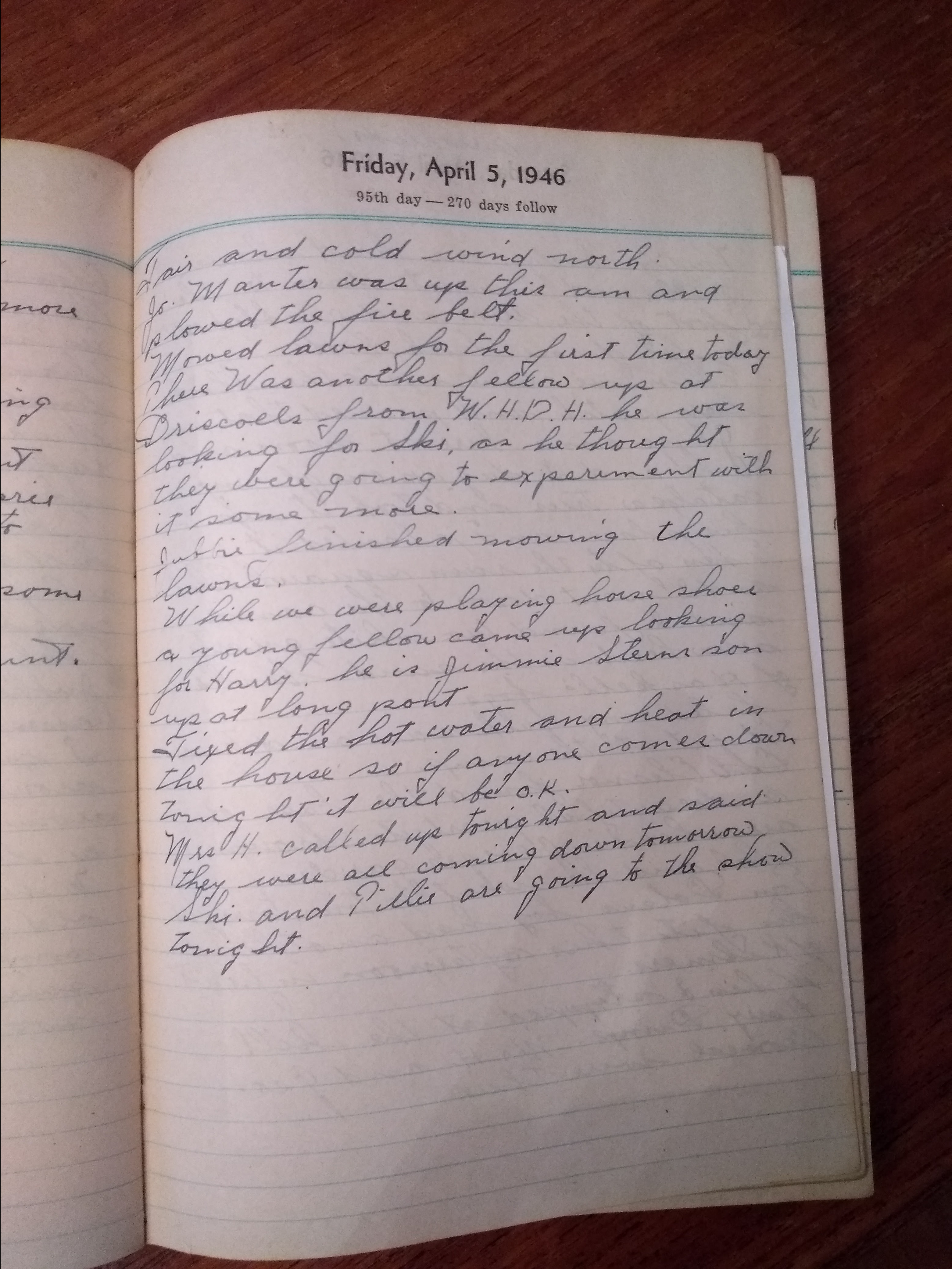 While we were playing horse shoes a young fellow came up looking for Harry. He is Jimmie Stern’s son up at long pond.