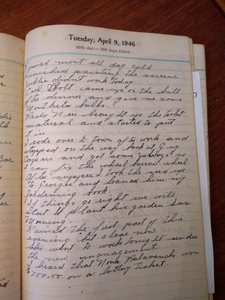 After supper I took the seed up to Georges and loaned him my gardening book. If things go right we will start to plant his garden Sun. morning.