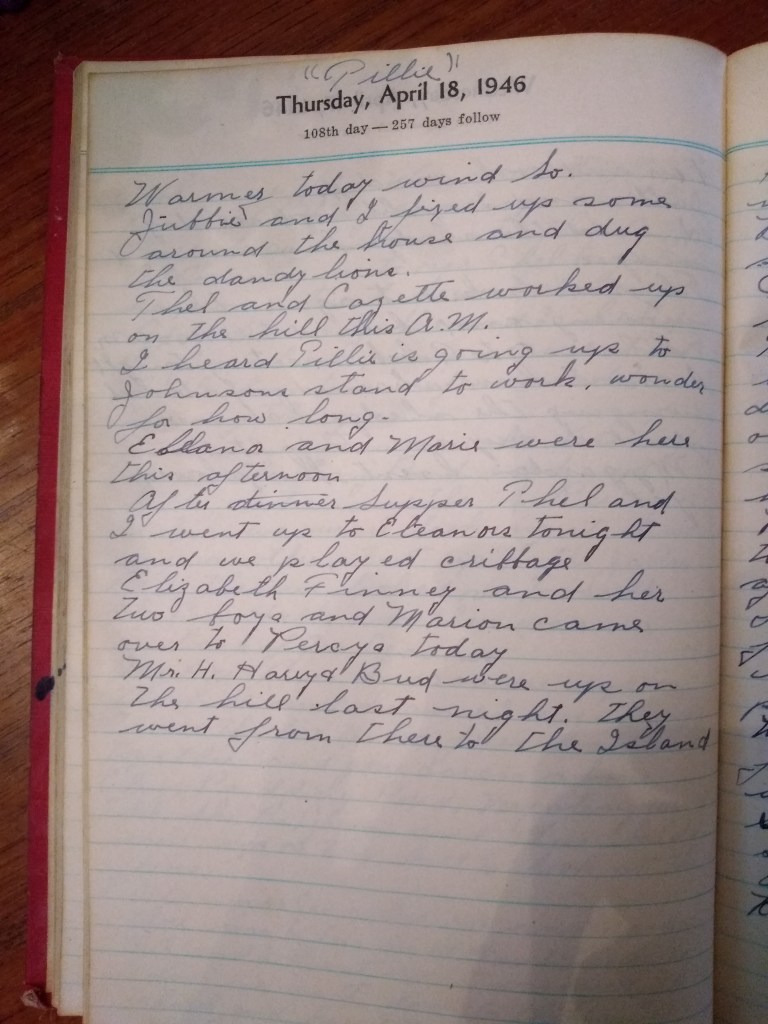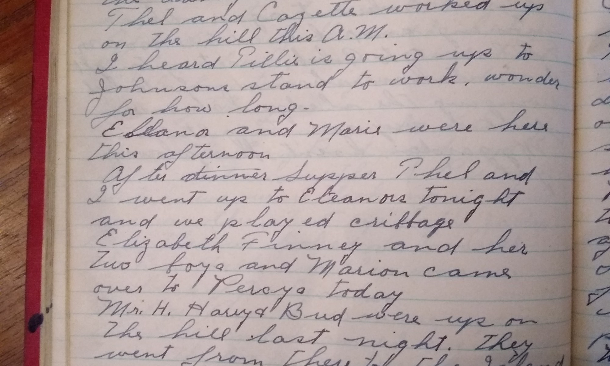 After supper Thel and I went up to Eleanors tonight and we played cribbage.
