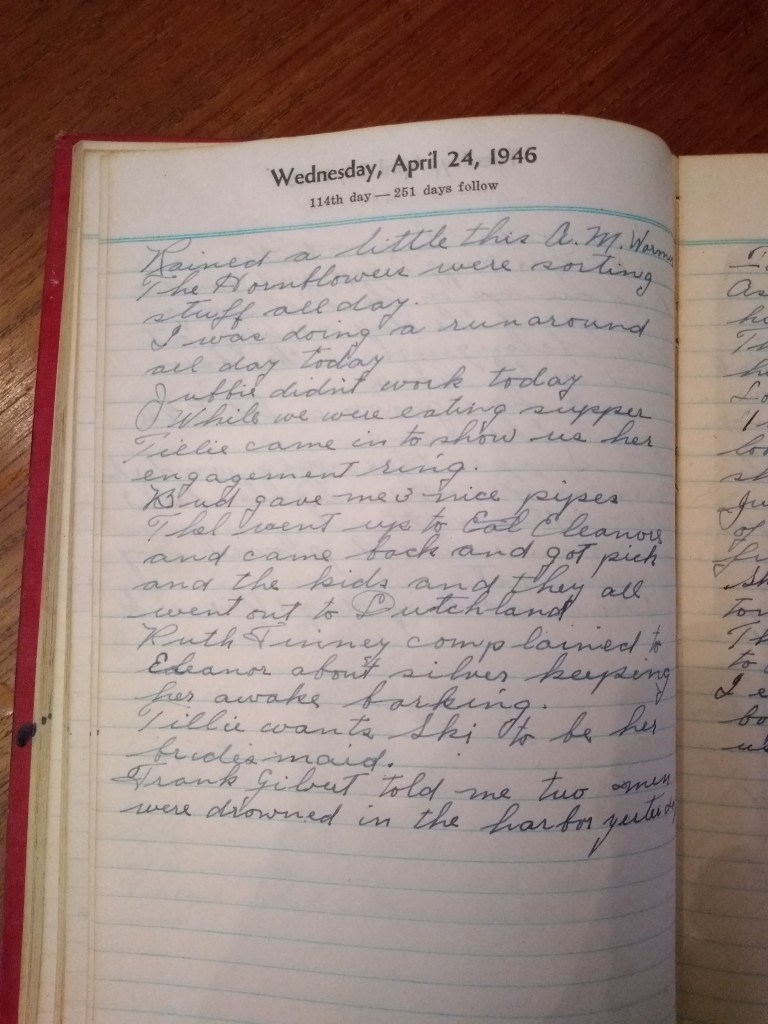 Frank Gilbert told me today two men were drowned in the harbor yesterday.