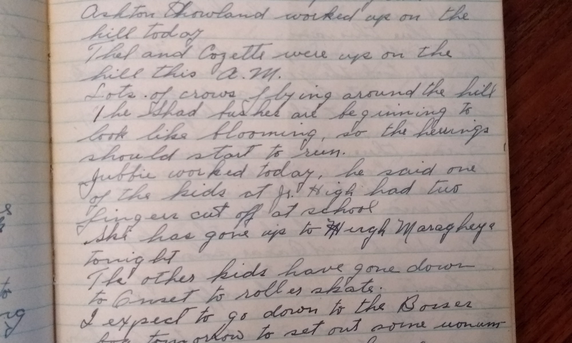Jubbie worked today. He said one of the kids at Jr. High had two fingers cut off at school.
