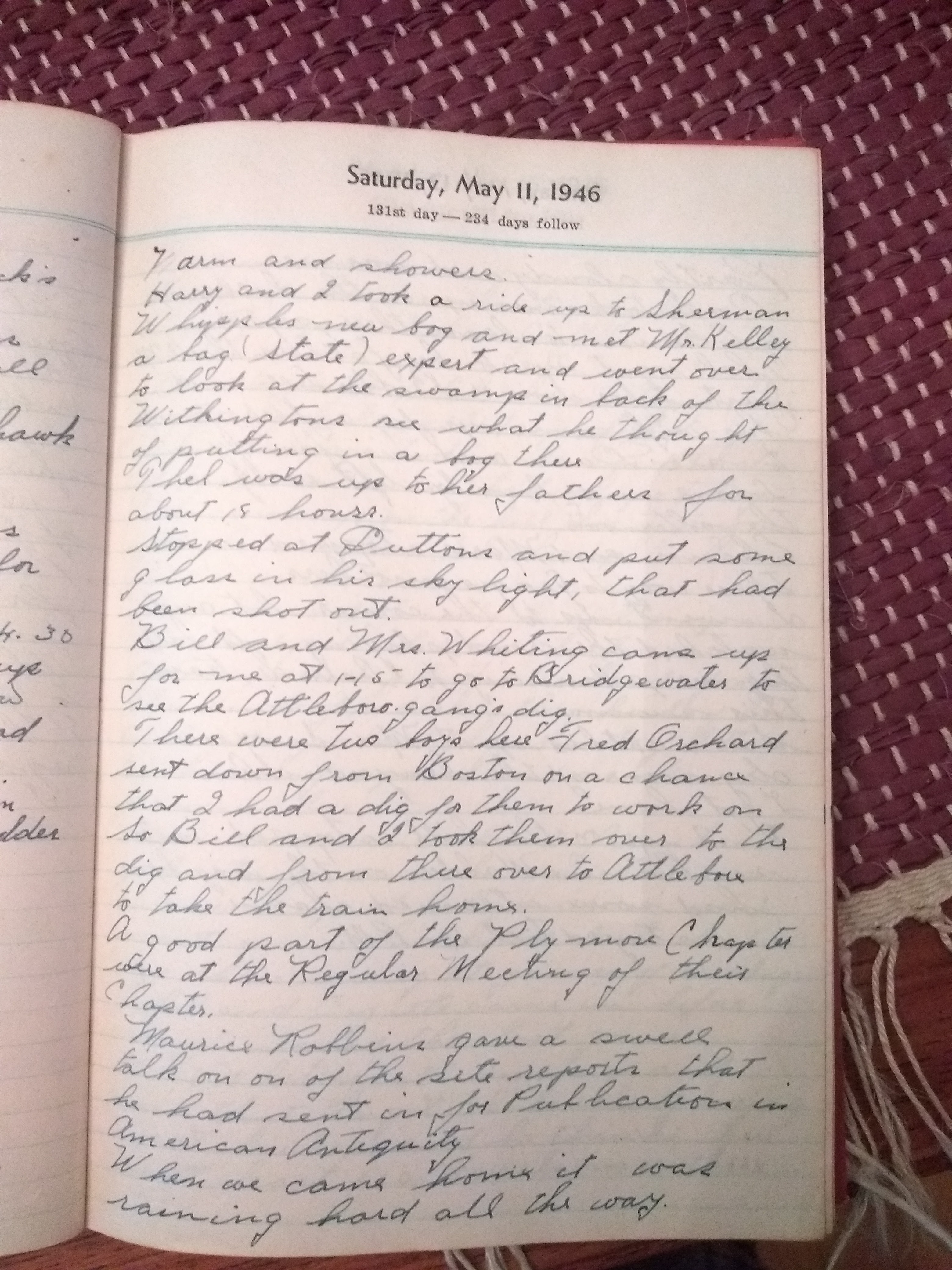 There were two boys her Fred Orchard sent down from Boston on a chance that I had a dig for them to work on. So Bill and I took them over to the dig and from there over to Attleboro to take the train home.