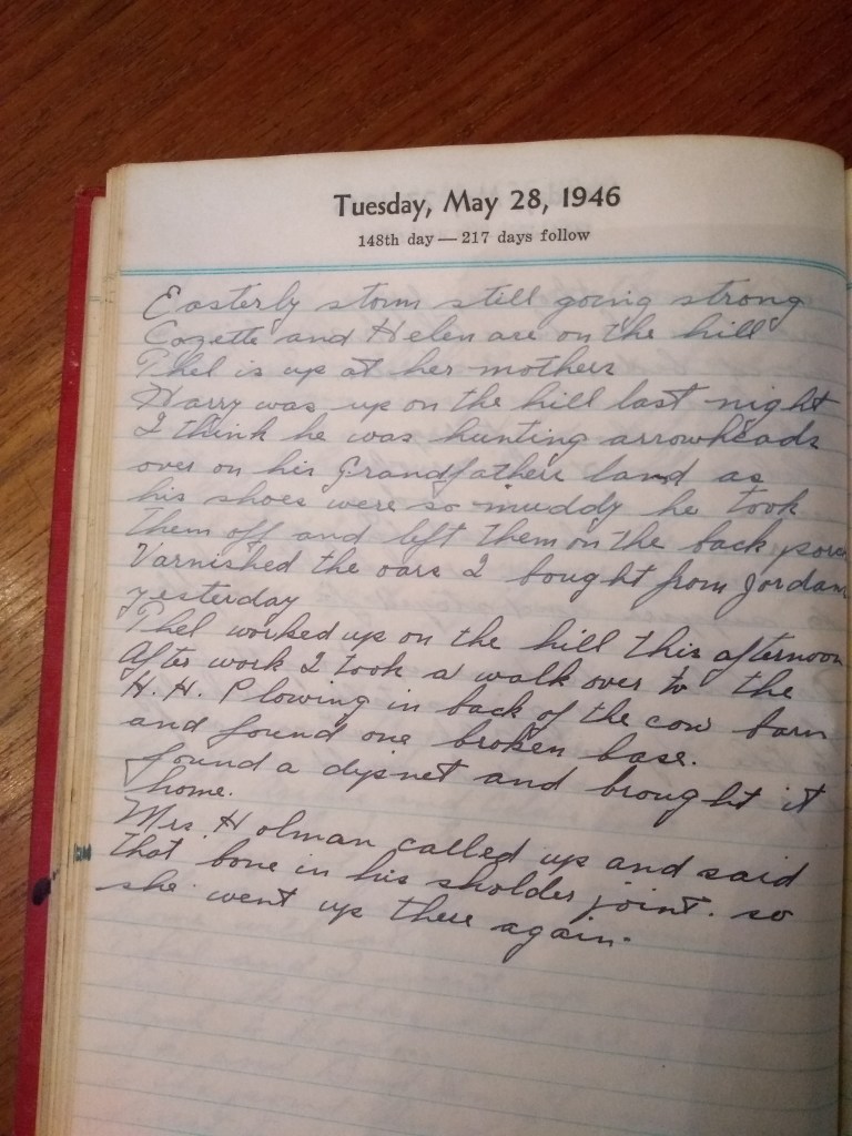 Harry was up on the hill last night. I think he was hunting arrowheads over on his grandfather’s land as his shoes were so muddy he took them off and left them on the back porch.