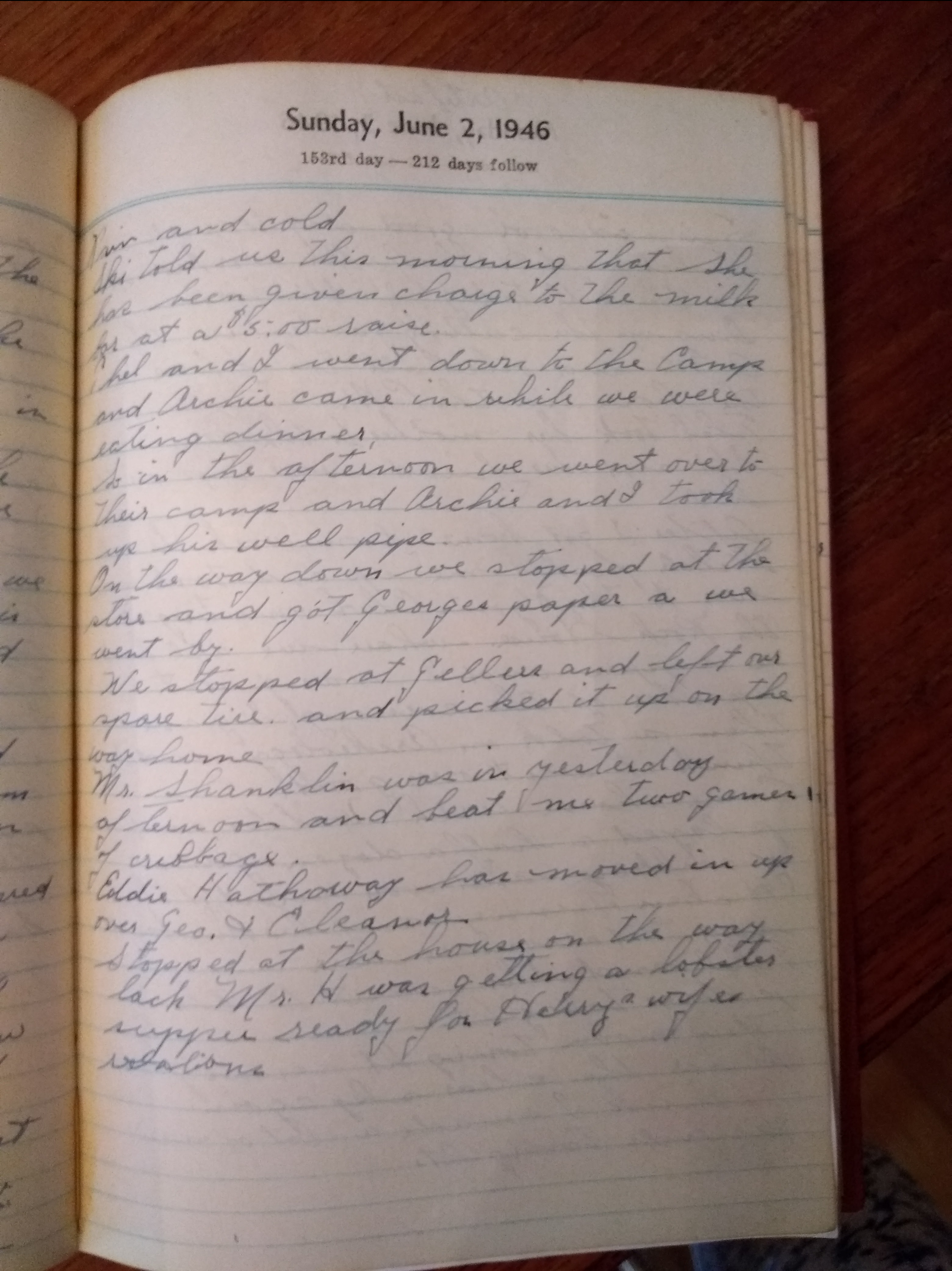 Thel and I went down to the camp and Archie came in while we were eating dinner. So in the afternoon we went over to their camp and Archie and I took up his well pipe.