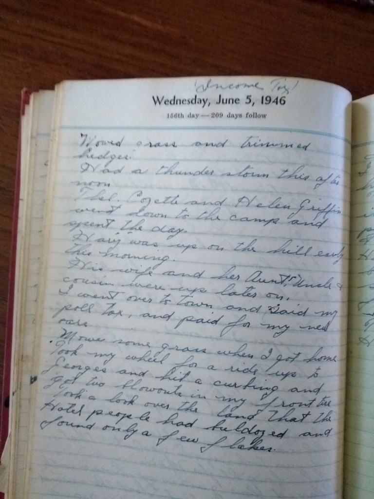 Thel, Cozette, and Helen Griffin went down to the camp and spent the day.