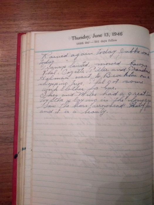 Thel, Cozette, Tillie, and Grandma Holman went to Brockton on a shopping trip. Thel got some work clothes for me.