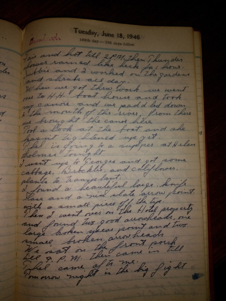 When we got thru work we went over to H.H. boat house and took my canoe and we paddled down to the mouth of the river, from there we brought the canoe here.
