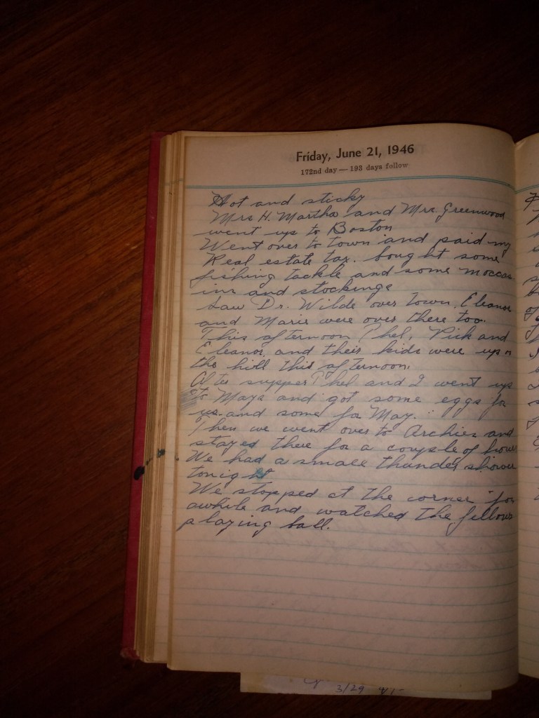 After supper Thel and I went up to May’s and got some eggs for us, and some for May. Then we went over to Archie’s and stayed there for a couple of hours.