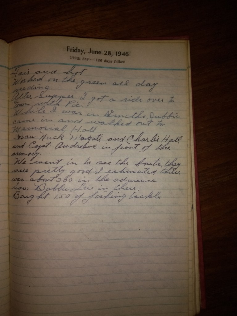 Bought $1.50 of fishing tackle.