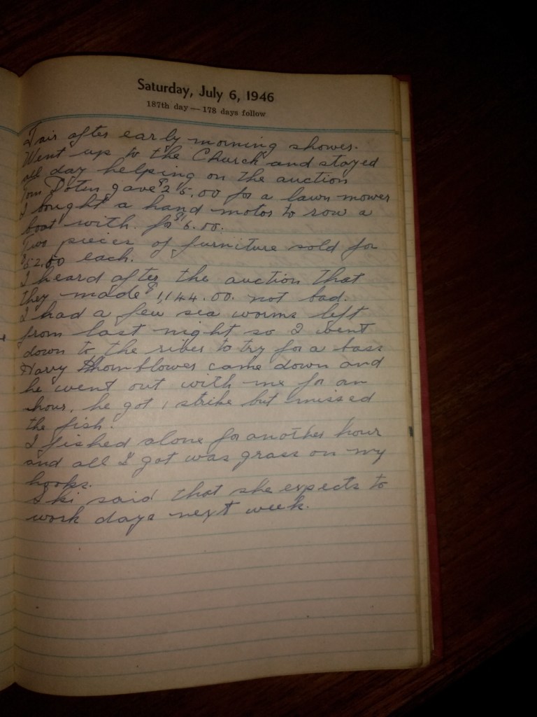Tom Doten gave $25.00 for a lawn mower. I bought a hand motor to row a boat with for $6.00.