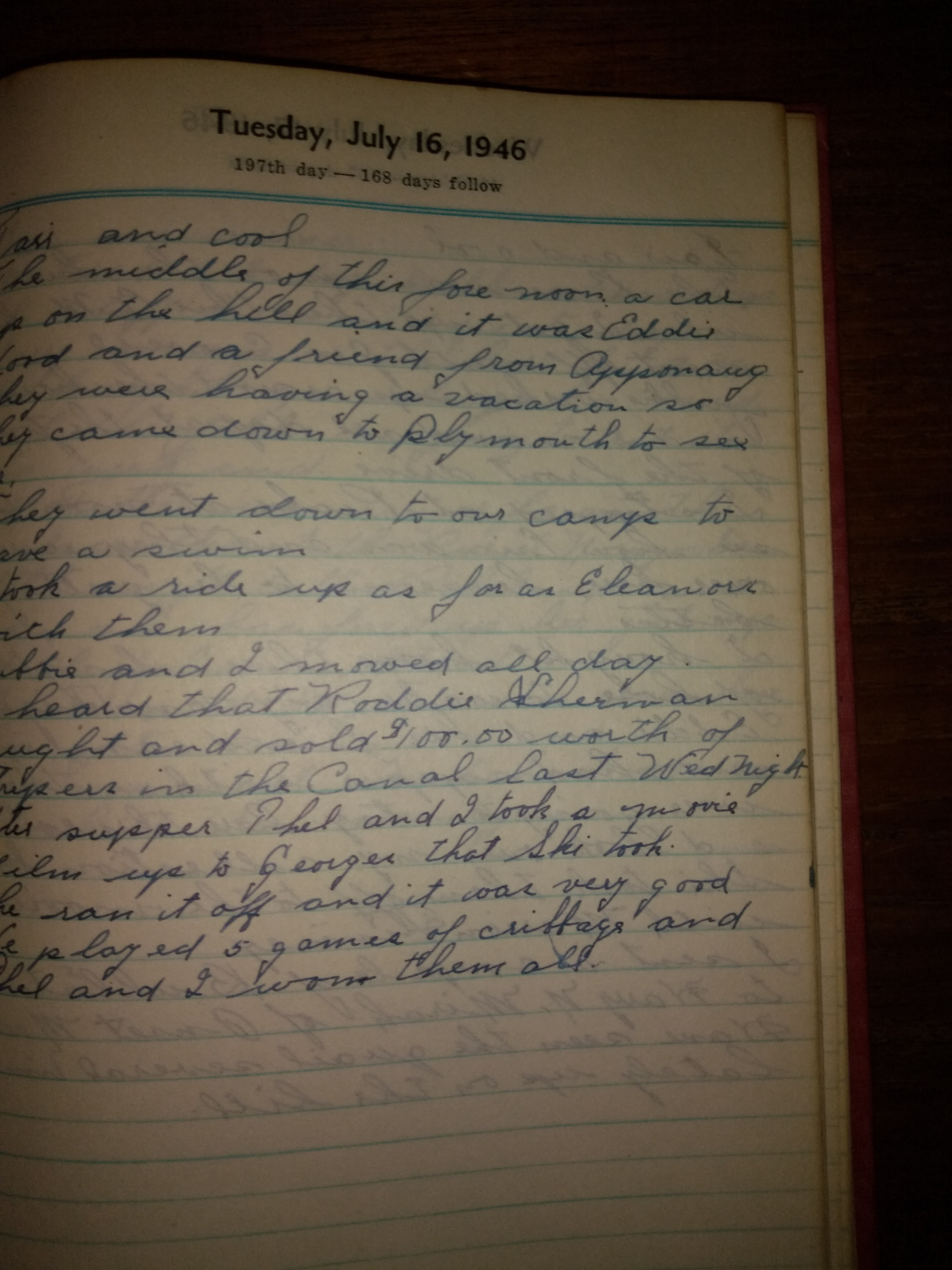 After supper Thel sent down to Ethel Phillip’s to a card game.