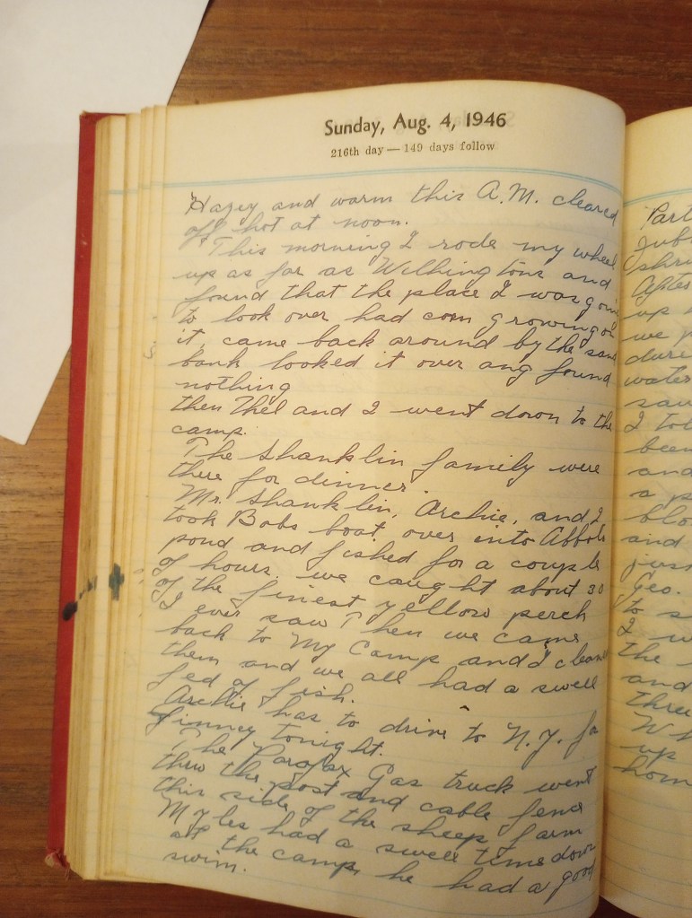 Mr. Shanklin, Archie, and I took Bob’s boat over into Abbot’s Pond and fished for a couple of hours. We caught about 30 of the finest yellow perch I ever saw. Then we came back to my camp and I cleaned them and we all had a swell feed of fish.