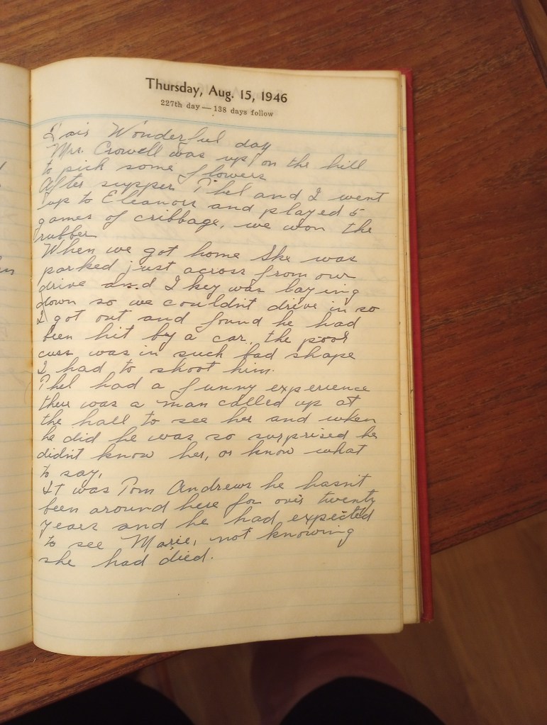 When we got home Ski was parked just across from our drive and Ikey was laying down so we couldn’t drive in so I got out and found he had been hit by a car. The poor cuss was in such bad shape I had to shoot him.
