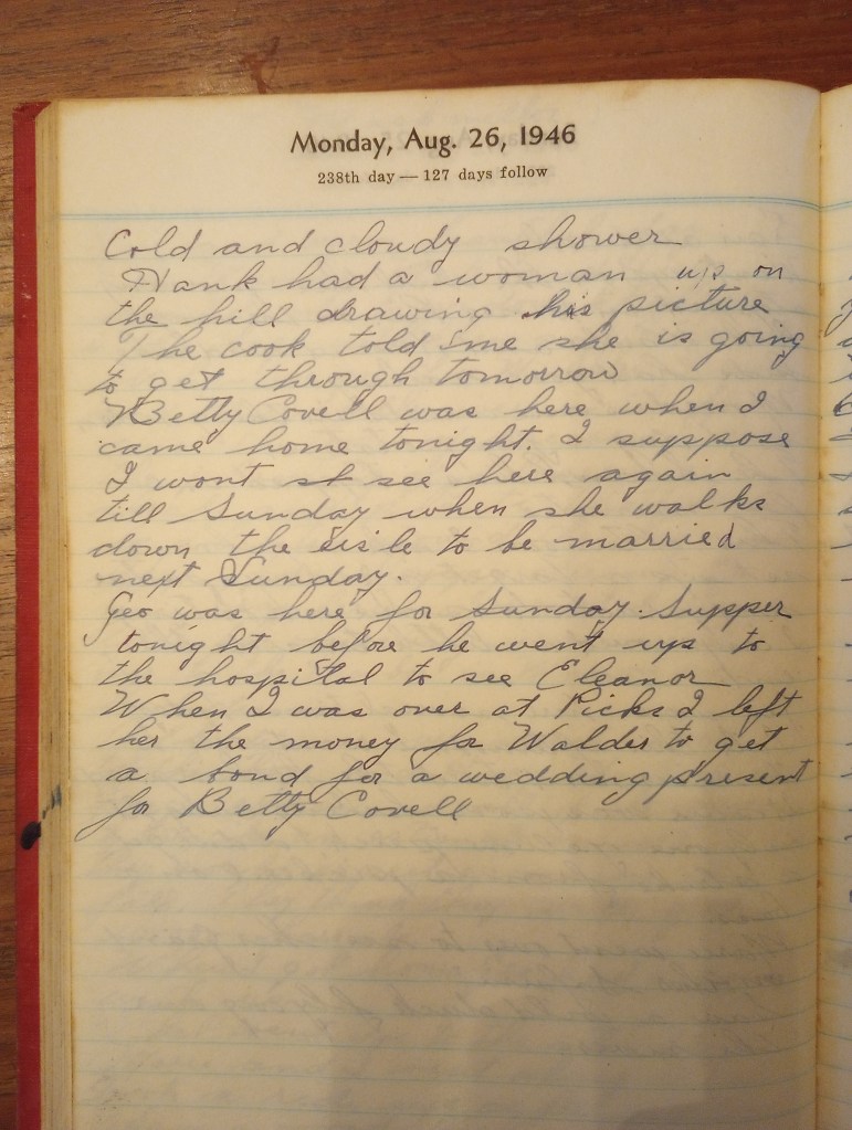 Betty Covell was here when I came home tonight. I suppose I won’t see her here again till Sunday when she walks down the aisle to be married next Sunday.