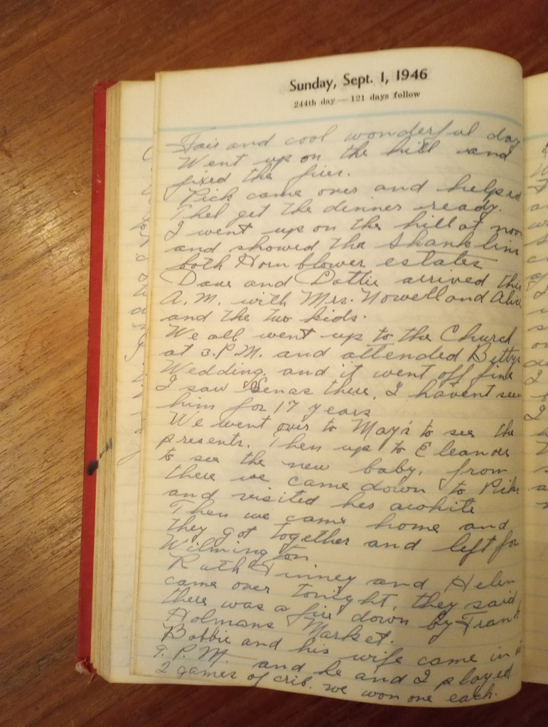 We all went up to the church at 3 P.M. and attended Betty’s wedding, and it went off fine. I saw Senas there. I haven’t seen him for 17 years.