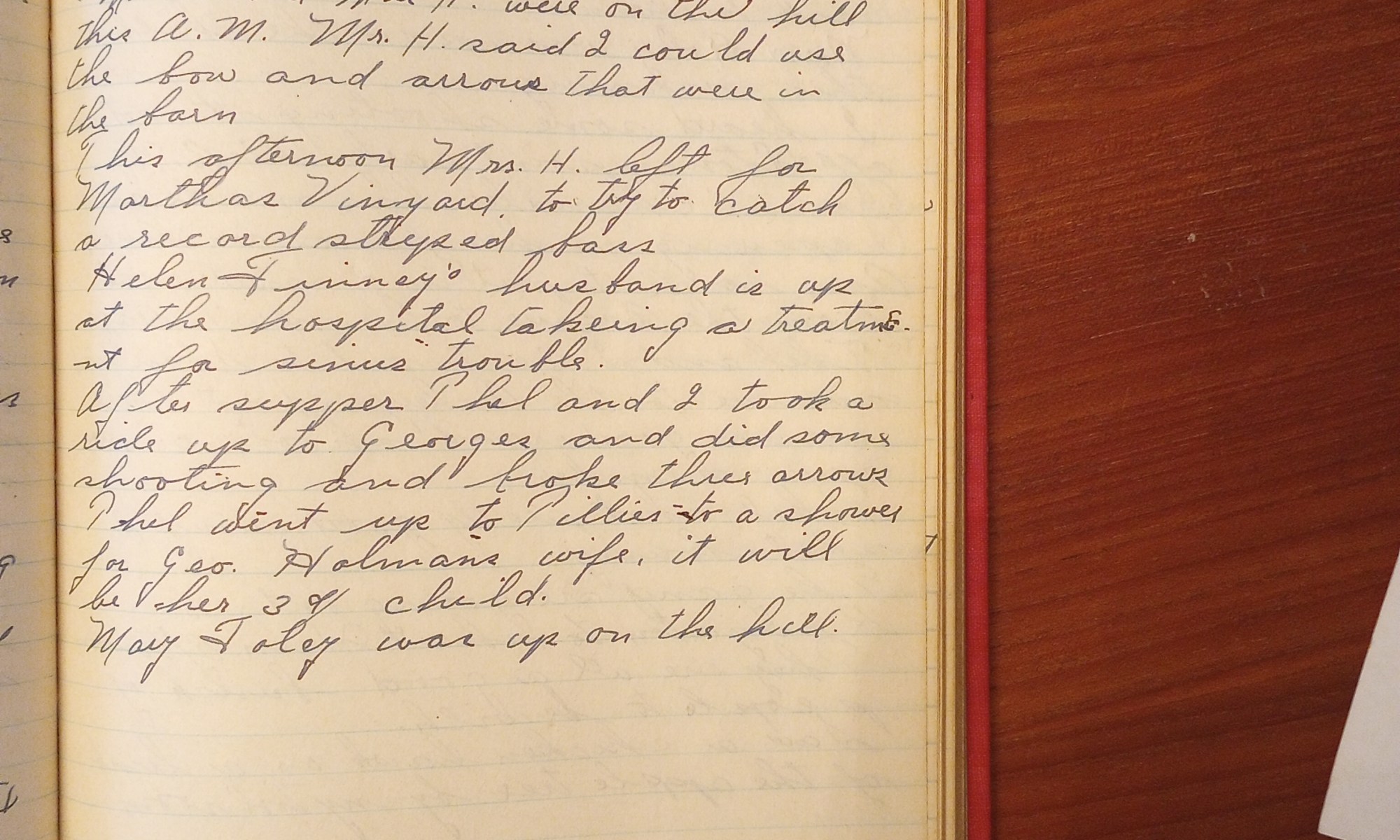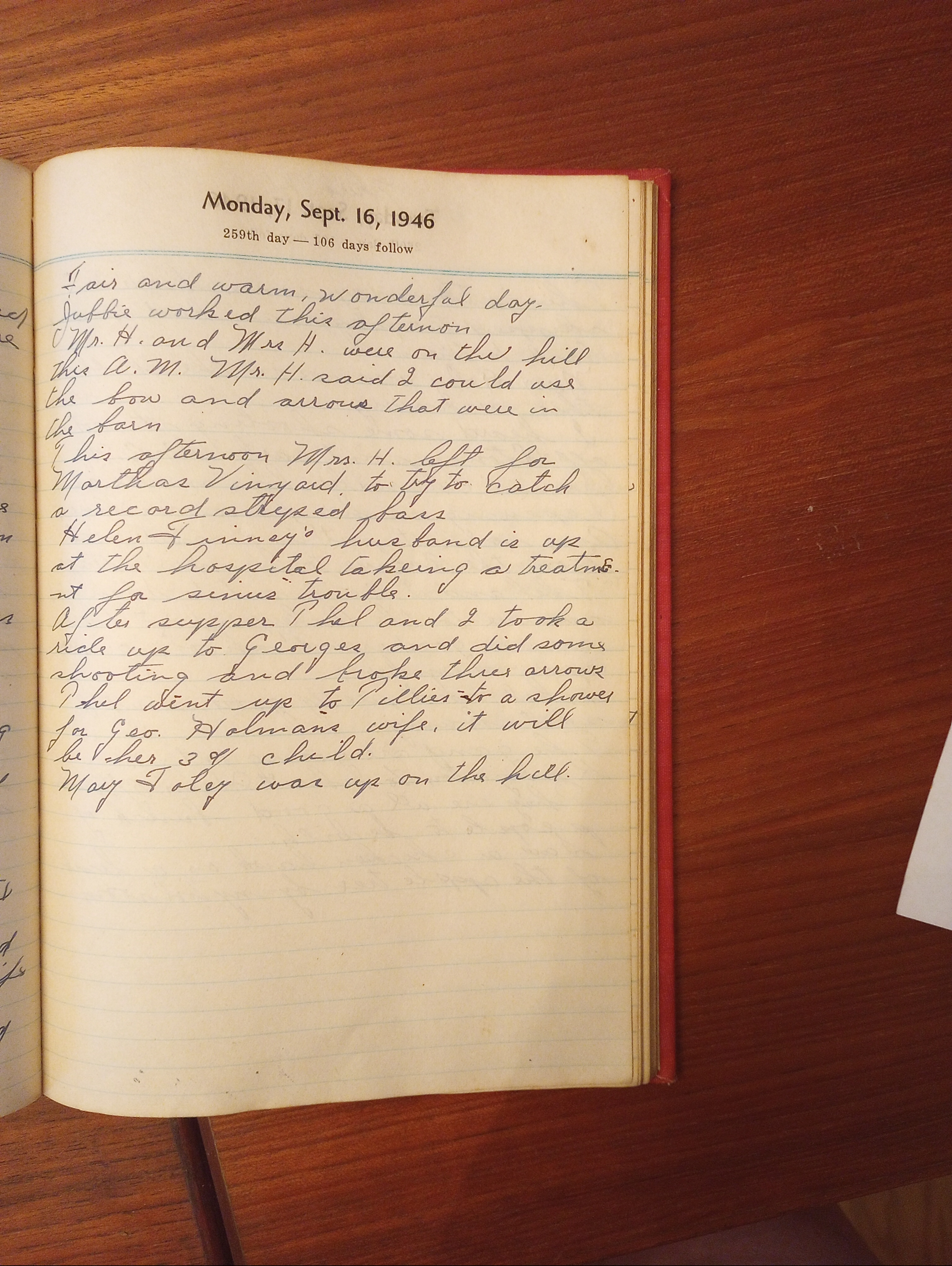 Good Morning! What an amazing historical insight proved by the journal today! The first Annual Martha’s Vineyard Striped Bass Derby began on September 15, 1946 and there was Mrs. Hornblower right in the thick of it! Jesse’s journal provides such a wonderful window into regional history! Thanks for sharing Andi.