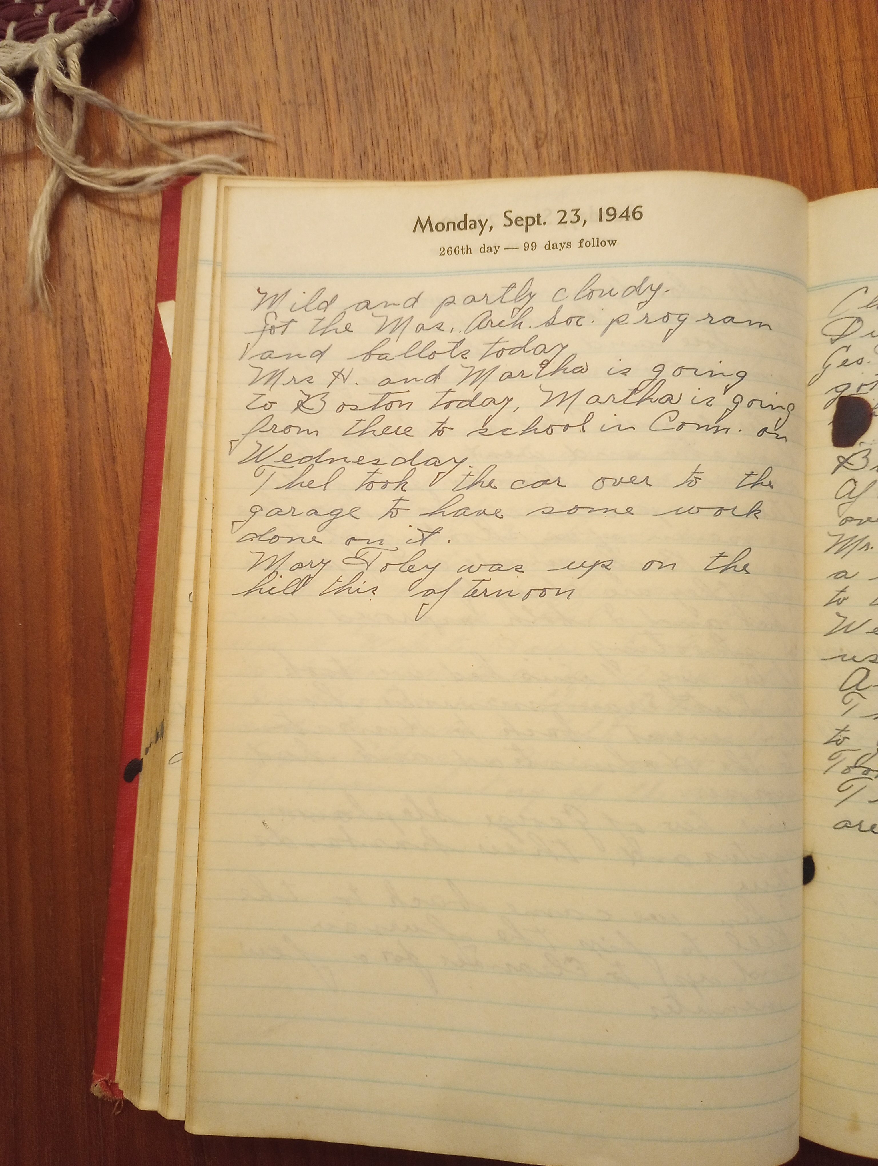 Mrs. H. and Martha are going to Boston today. Martha’s going from there to school in Conn. on Wednesday.
