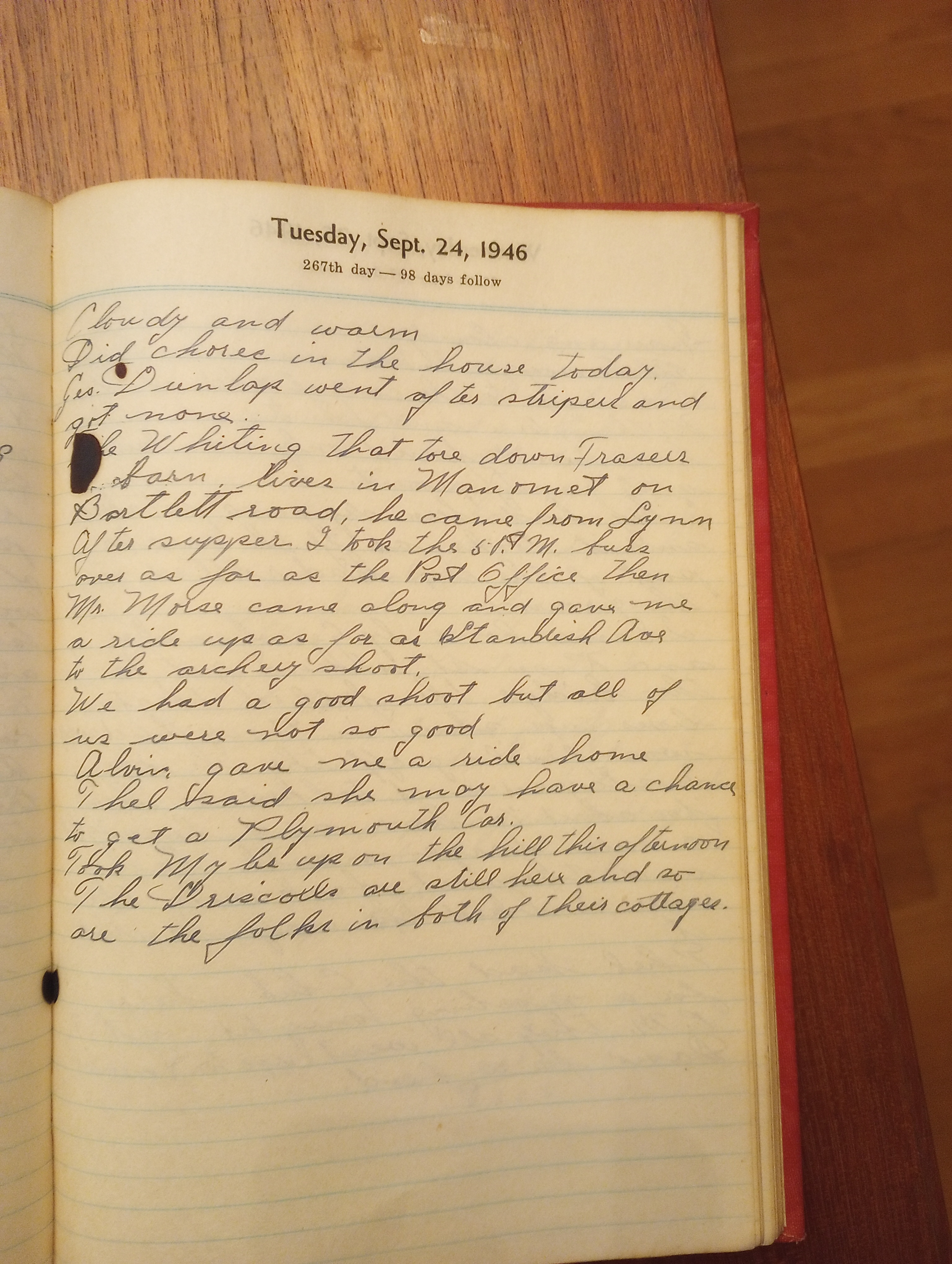 After supper I took the 6 P.M. bus over as far as the Post Office.  Then Mr. Morse came along and gave me a ride up as far as Standish Aave. to the archery shoot.