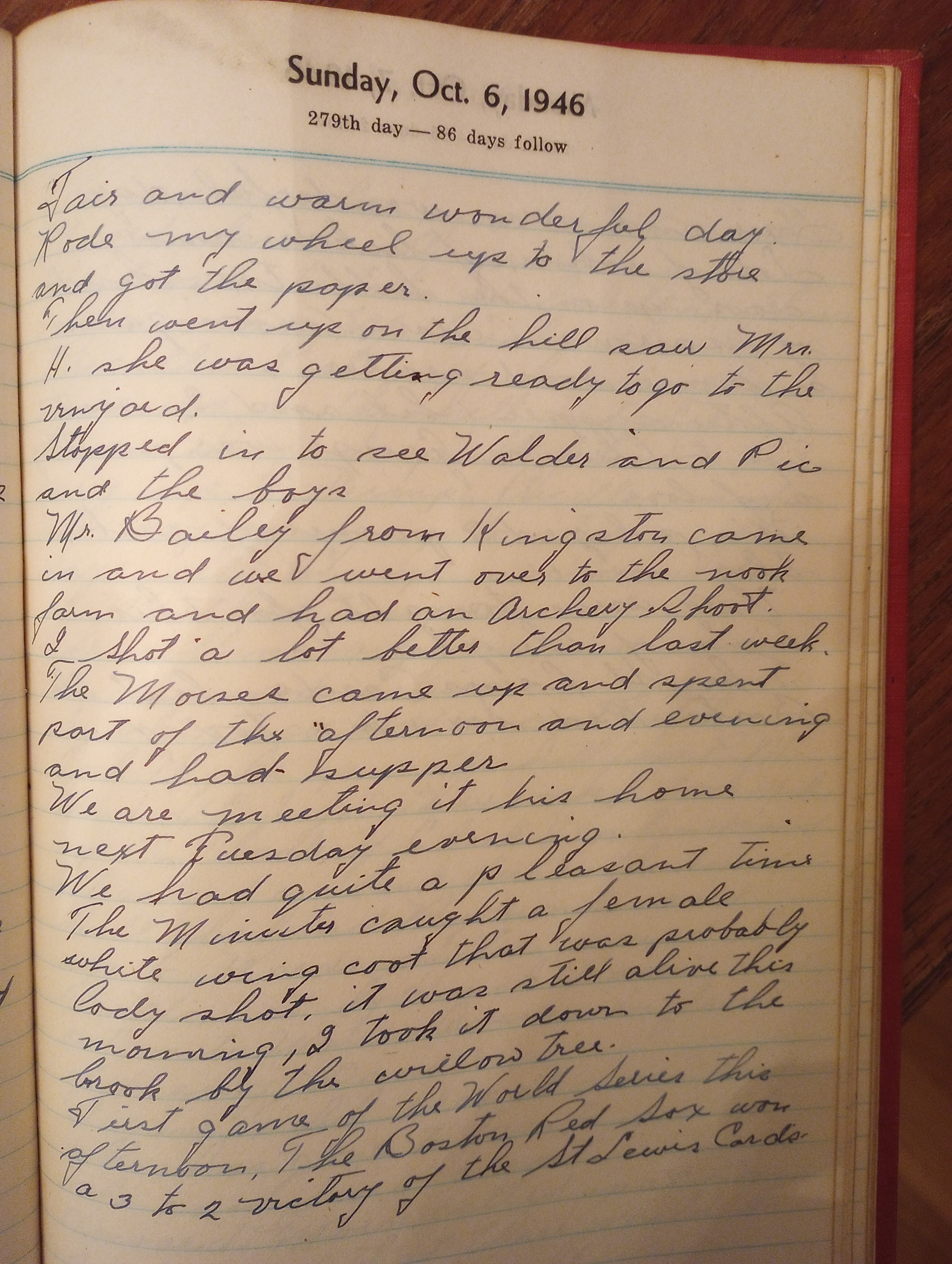 First game of the World Series this afternoon. The Boston Red Sox won a 3 to 2 victory over the St. Lewis (Louis) Cards.
