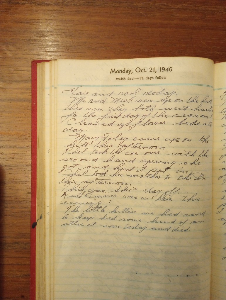 Mr. and Mrs. H. wre up on the hill this A.M. They both went hunting for the first day of the season.