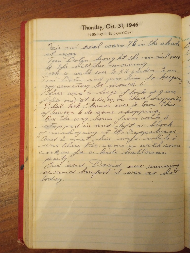 Took a walk over to H. H. garden to see Tom Doten and pay him for keeping my cemetery lot mowed.