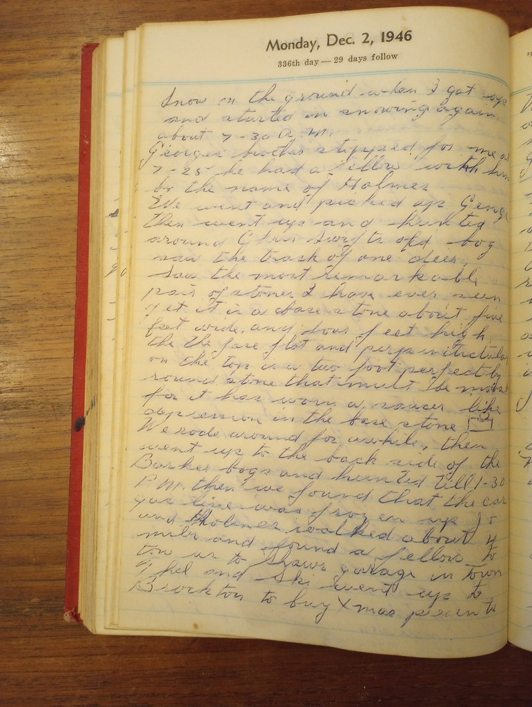 We rode around for awhile, then went up to the back side of the Barker bogs and hunted till 1:30 P.M. Then we found that the car gas line was frozen up. Jo and Holmes walked about 4 miles and found a fellow to tow us to Shaw’s garage in town.