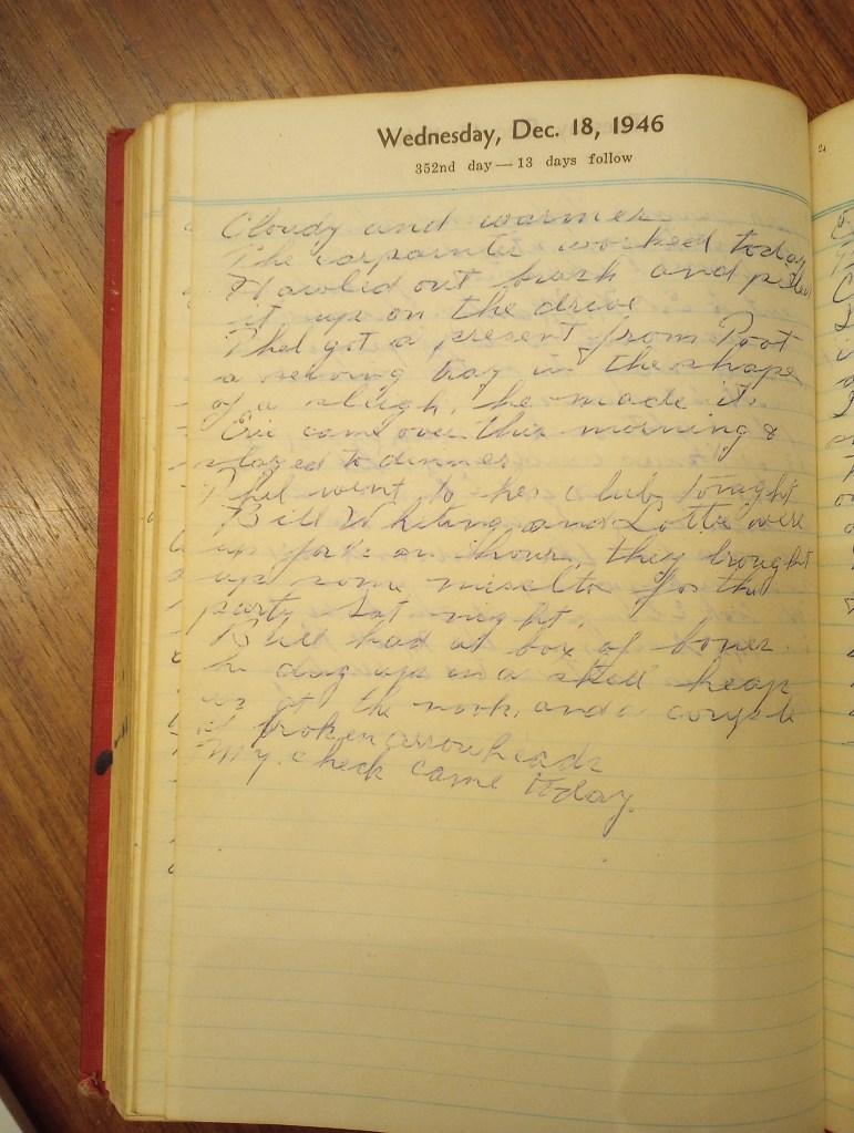 Bill Whiting and Lottie were up for an hour. They brought up some mistletoe for the party Sat. night.