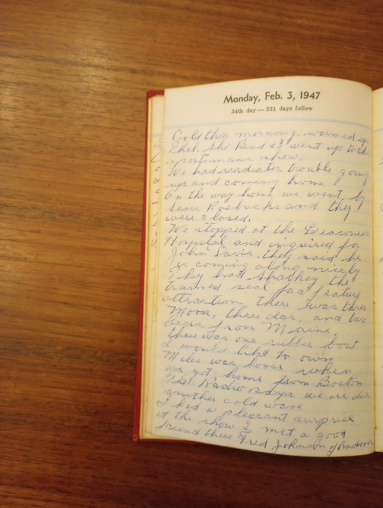 Thel, Ski, Bud, and I went up to the sportsman’s show. We had radiator trouble going up and coming home. On the way home we went by Sears Roebucks and they were closed.
